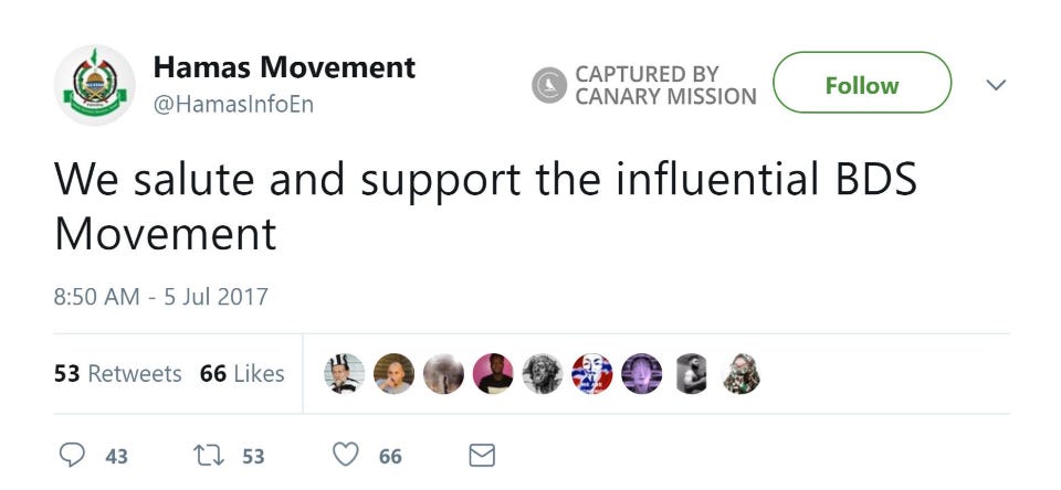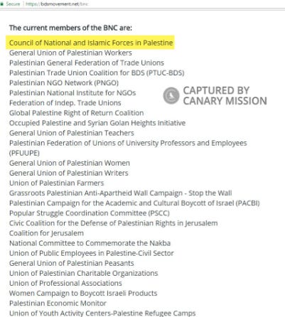 The overlap between designated terrorists and BDS leadership is not coincidental; a National Association of Scholars investigation concluded the BDS network is “a coalition of organizations advocating punitive economic measures against Israel” with “senior operatives from terrorist groups at the helm.”