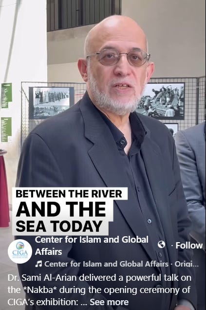 CIGA, which al-Arian leads, has repeatedly hosted individuals affiliated with Hamas. For example, on October 6, 2024, the center held a conference featuring Osama Hamdan, a senior Hamas official.