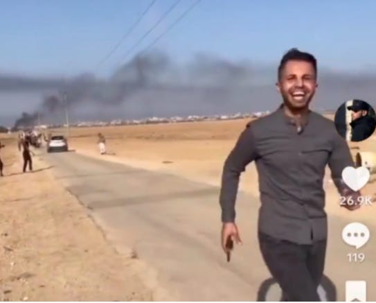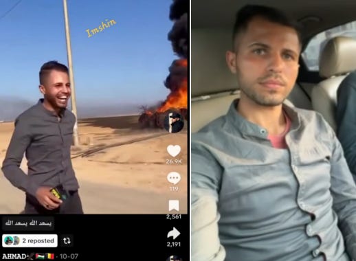 Mohannad al-Khatib, a self-described journalist from Gaza, was identified by JID through extensive video evidence, social media posts, and statements documenting his presence during the October 7 attacks. According to the report, al-Khatib was filmed “jubilantly walking along, filming the violence, cheering and glorifying it.”