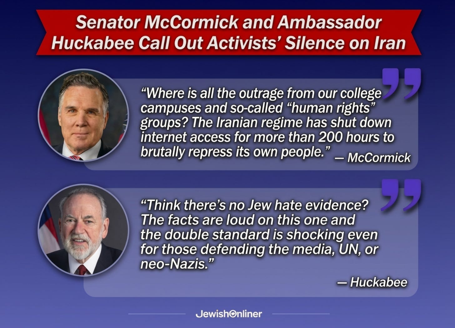 Senator McCormick & Ambassador Huckabee Call Out Activists' Silence on Iran, Citing Jewish Onliner's Analysis