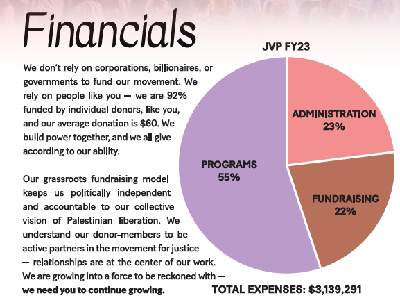 JVP claims it does not rely on corporate, billionaires, or government funds. Yet this is not accurate. JVP has received over $700,000 in Paycheck Protection Program loans and $900,000 in grants from private foundations between 2021 and 2023—further demonstrating the organization’s dishonesty.