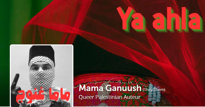 The public event features Mama Ganuush, a trans Palestinian drag artist and past plaintiff in federal litigation alleging U.S. officials’ “complicity in genocide”