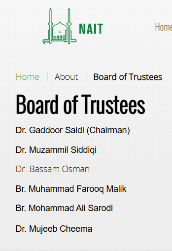 Dr. Muzammil Siddiqi occupies a particularly revealing position in the Brotherhood network: He serves simultaneously on NAIT’s board and the Fiqh Council while having previously directed ISNA. This interlocking leadership creates a circular governance structure where the same individuals control both the organizations and their property-holding trust.