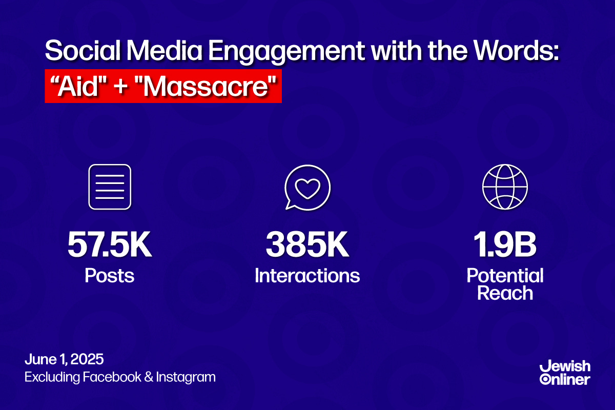 Yet by that point, the damage had been done. An analysis of social media data performed by Jewish Onliner revealed about 57,500 posts containing both the words “aid” and “massacre,” generating 385,000 interactions and reaching an estimated 1.9 billion users.