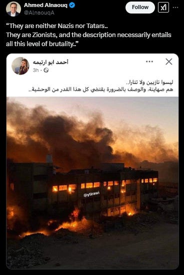 An investigation by investigative social media outfit Gnasher Jew revealed Alnaouq has used social media to spread antisemitic narratives and promote terrorist propaganda. His posts include Holocaust comparisons of Israel to Nazi Germany, and calls for the eradication of Zionism.