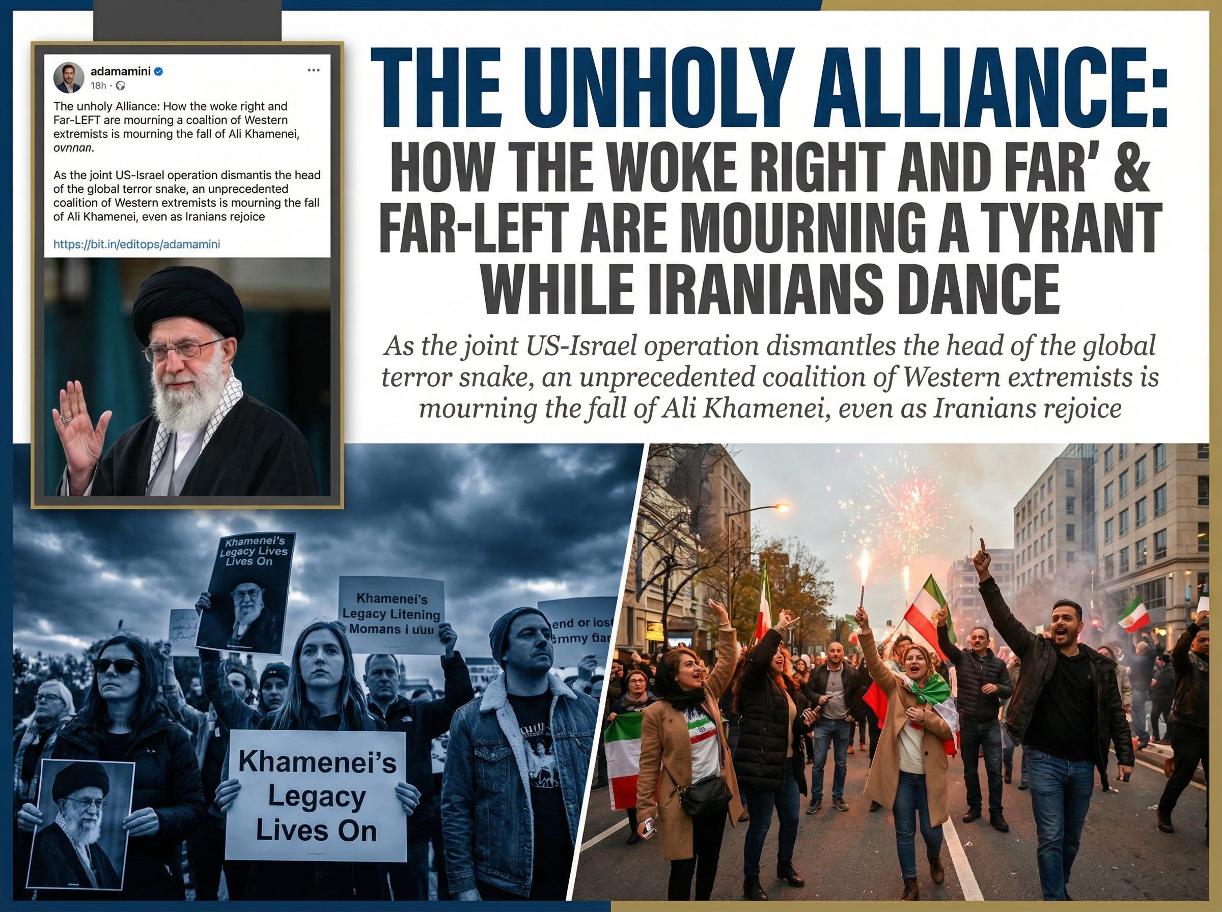 As the joint US-Israel operation dismantles the head of the global terror snake, a coalition of Western extremists is mourning the fall of Ali Khamenei, even as Iranians rejoice in the streets