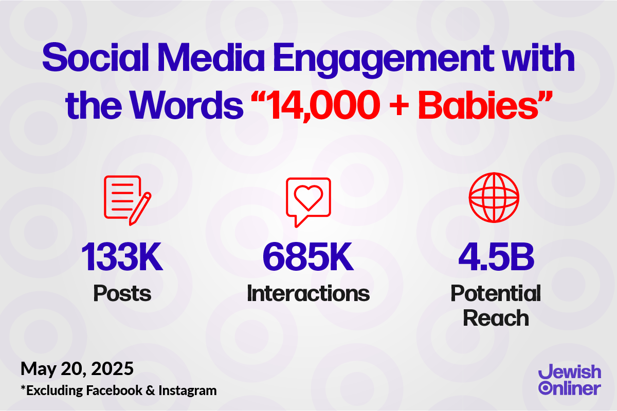 An analysis of social media posts—excluding Facebook and Instagram—that contain both “14,000” and “babies” found the phrase was used over 133,000 times in one day. These posts generated 685,000 interactions and reached 4.5 billion potential views.