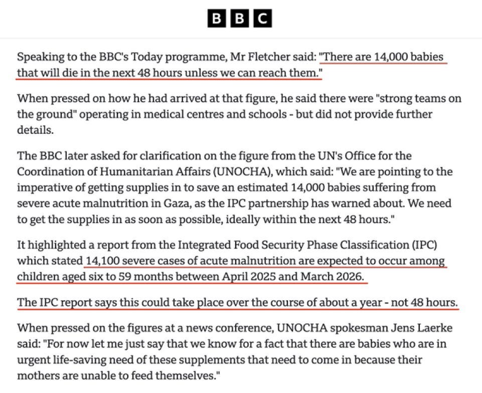 On May 20, 2025, UN Relief Chief Tom Fletcher made a false claim on the BBC’s Today programme that “There are 14,000 babies that will die in Gaza in the next 48 hours unless we can reach them.” This dramatic claim, made without direct sources or data, quickly spread online and generated countless headlines in the media.