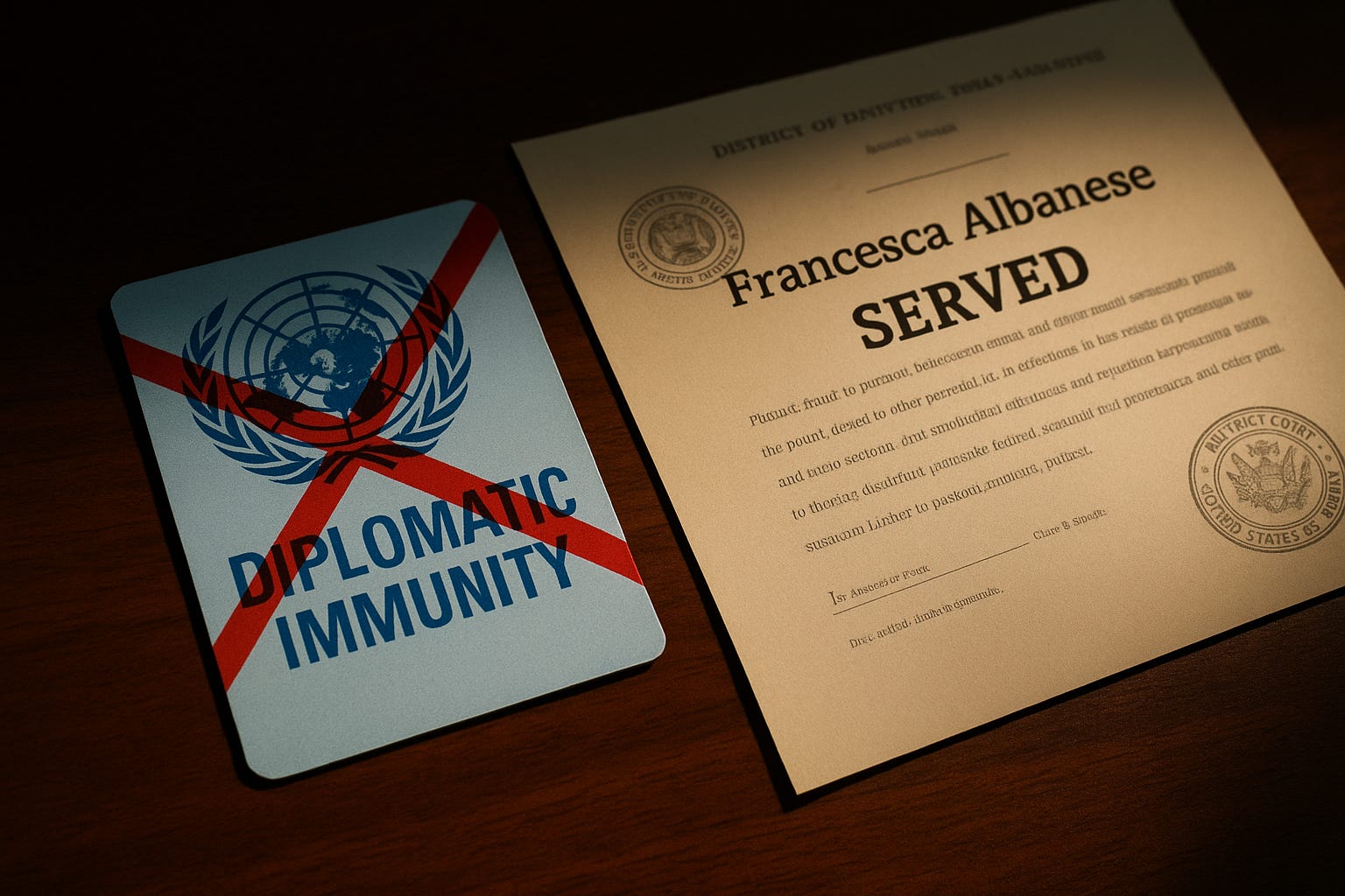 A central legal battleground is whether Albanese can claim UN immunity. The U.S. government has taken the position that she cannot.