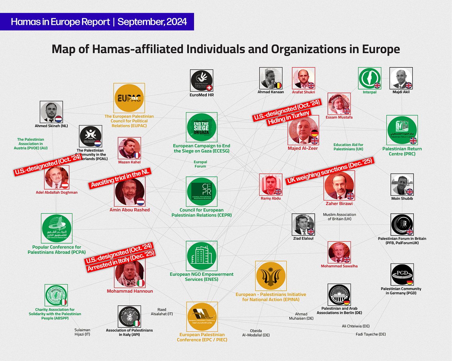 Hannoun’s arrest reveals how Italian operations function as a node in a sophisticated pan-European Hamas network. Significantly, both Hannoun and Raed Alsalahat (arrested December 27) serve on the board of the European Palestinians Conference (EPC), an organization that coordinates various pro-Palestine activities across Europe.
