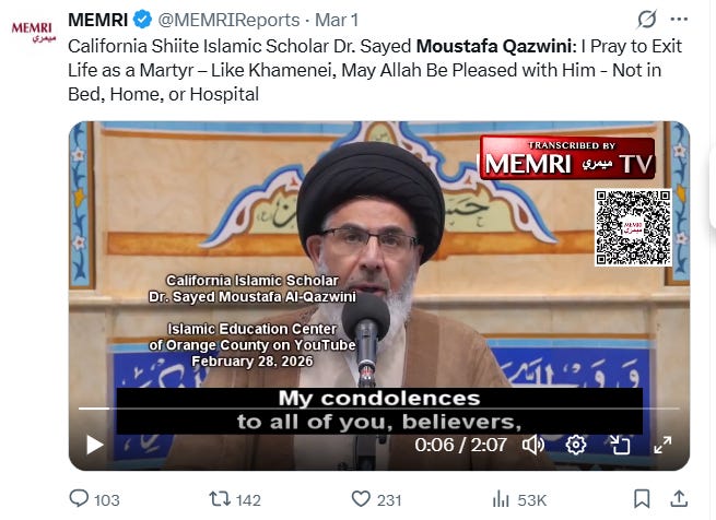 Qazwini then expressed a personal wish: “I pray I exit this life as a martyr, just like Khamenei.