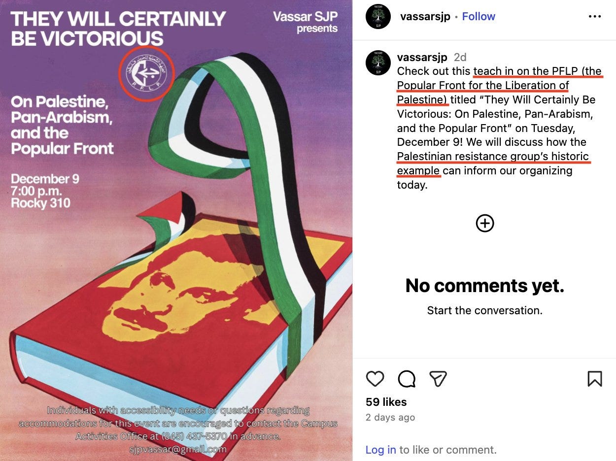 Vassar College Shuts Down SJP Event Glorifying PFLP Terrorist Organization
