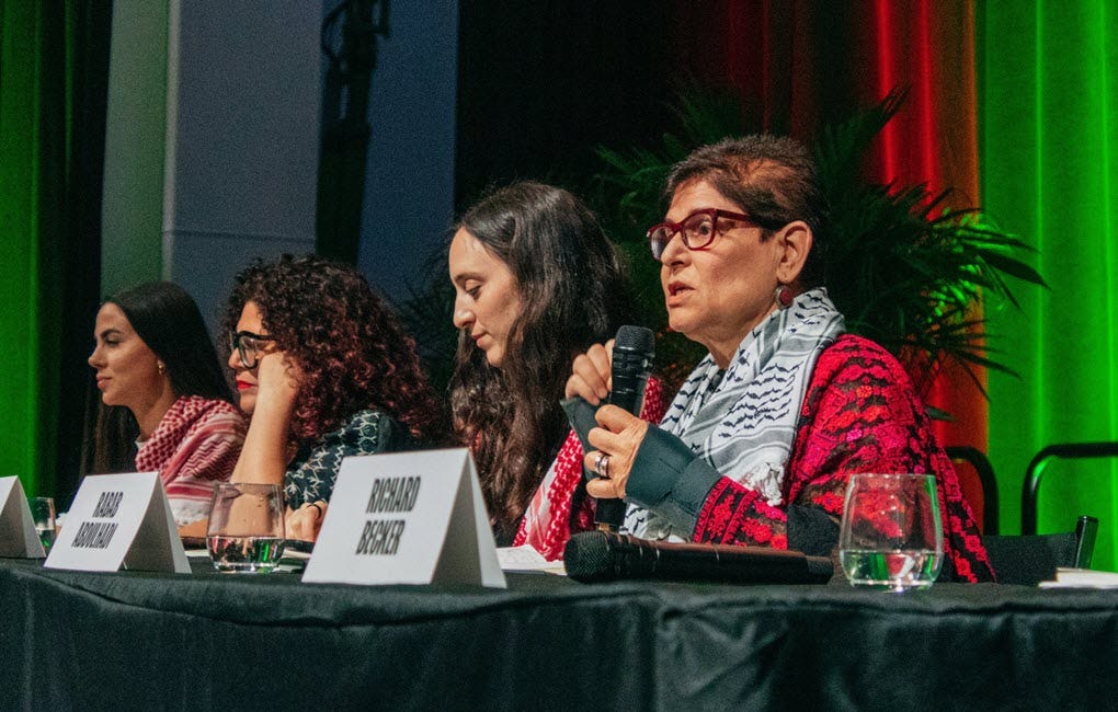 The conference featured speakers such as Salah Salah, a founder of the PFLP, Sami Al-Arian, and Leila Khaled. Additionally, the event included Palestinian-Lebanese guerilla fighters Kifah Afifi and Anwar Yassine.