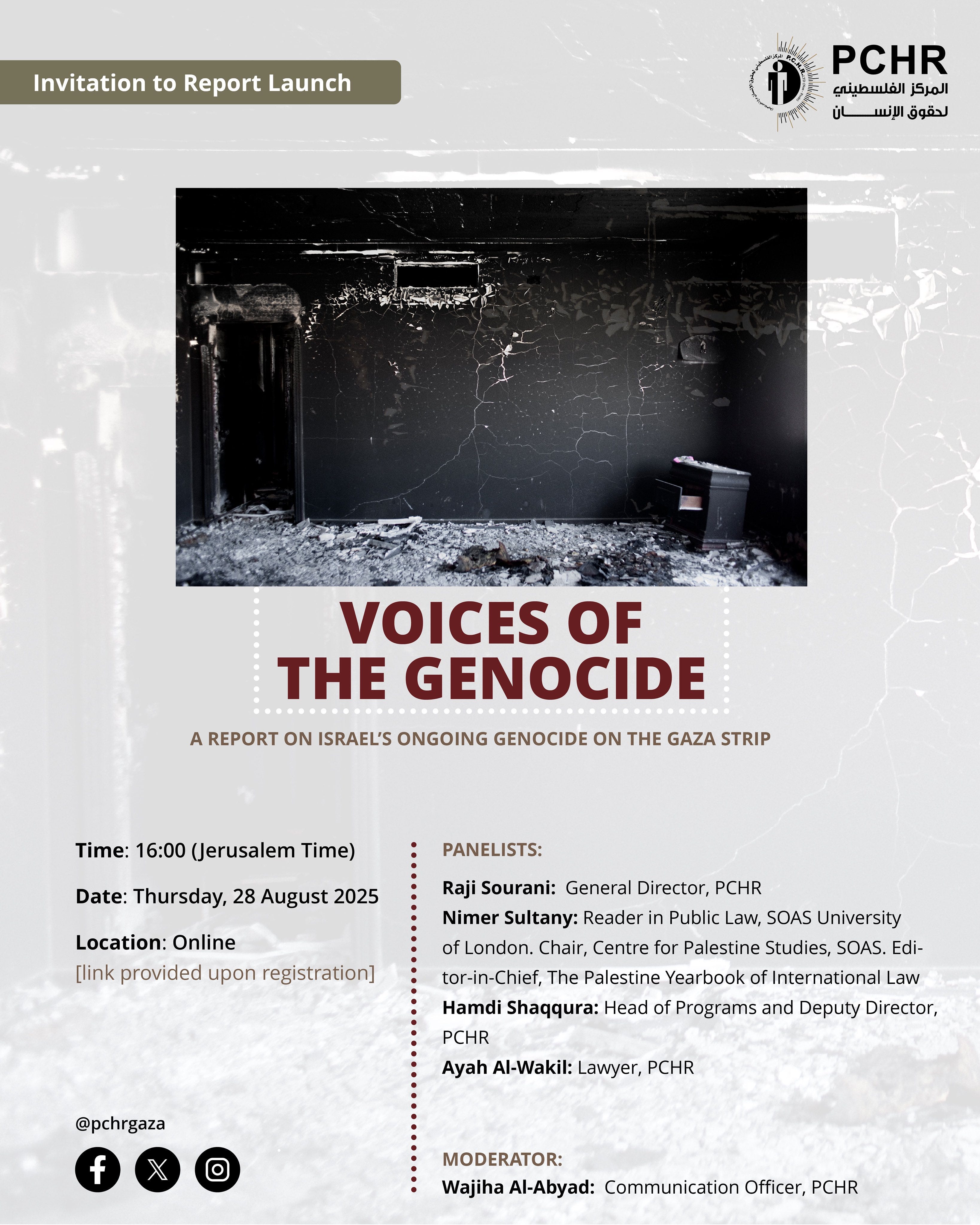 Dr. Nimer Sultany, a Reader in Public Law at SOAS University of London and Chair of the Centre for Palestine Studies, is set to be a featured speaker at the virtual launch of a new report titled "Voices of the Genocide: Israel's Ongoing Genocide on the Gaza Strip" by the Palestinian Centre for Human Rights (PCHR).