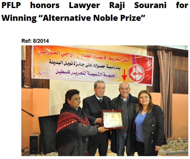 Despite claims in a 1995 Washington Report article that Sourani was no longer affiliated with the PFLP, evidence suggests ongoing connections. In February 2014, the PFLP organized a ceremony in Gaza honoring Sourani for winning the "Alternative Nobel Prize." During this ceremony, attended by PFLP Political Bureau member Rabah Muhanna, Sourani made explicit statements about his continued pride in his PFLP membership.