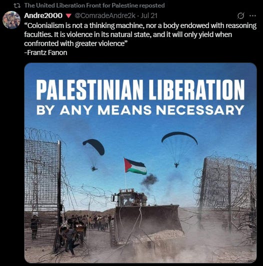 “There is only one path to liberation: Revolution. Intifada. Total resistance.”