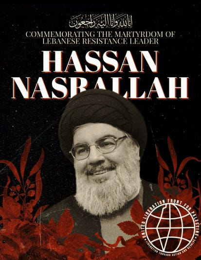 The group also shared on its Telegram and Instagram (since removed), a translated video of Hassan Nasrallah speaking about his views on the United States claiming that The United States decides everything for Israel, and they are the true ones to blame. Nasrallah was the decades long leader of Hezbollah, the terrorist group responsible for the 1983 Beirut Barracks bombing, which killed 241 US Servicemen.